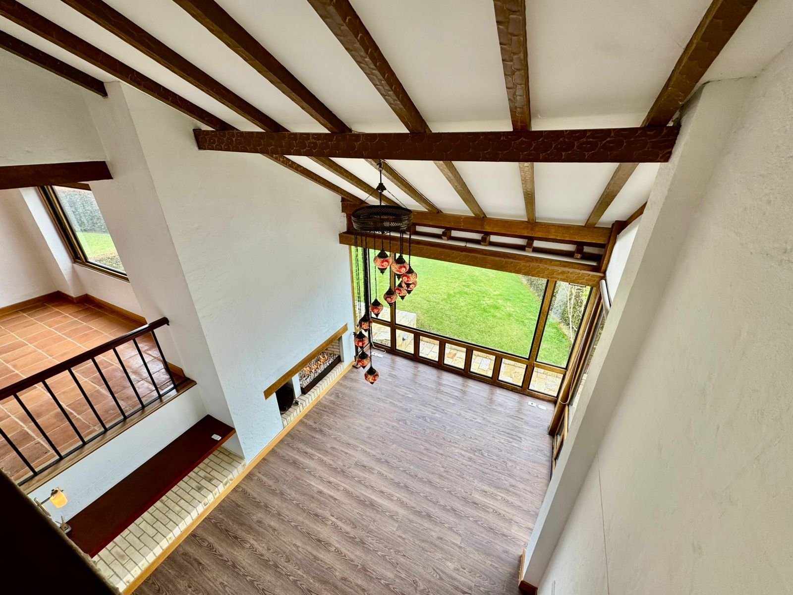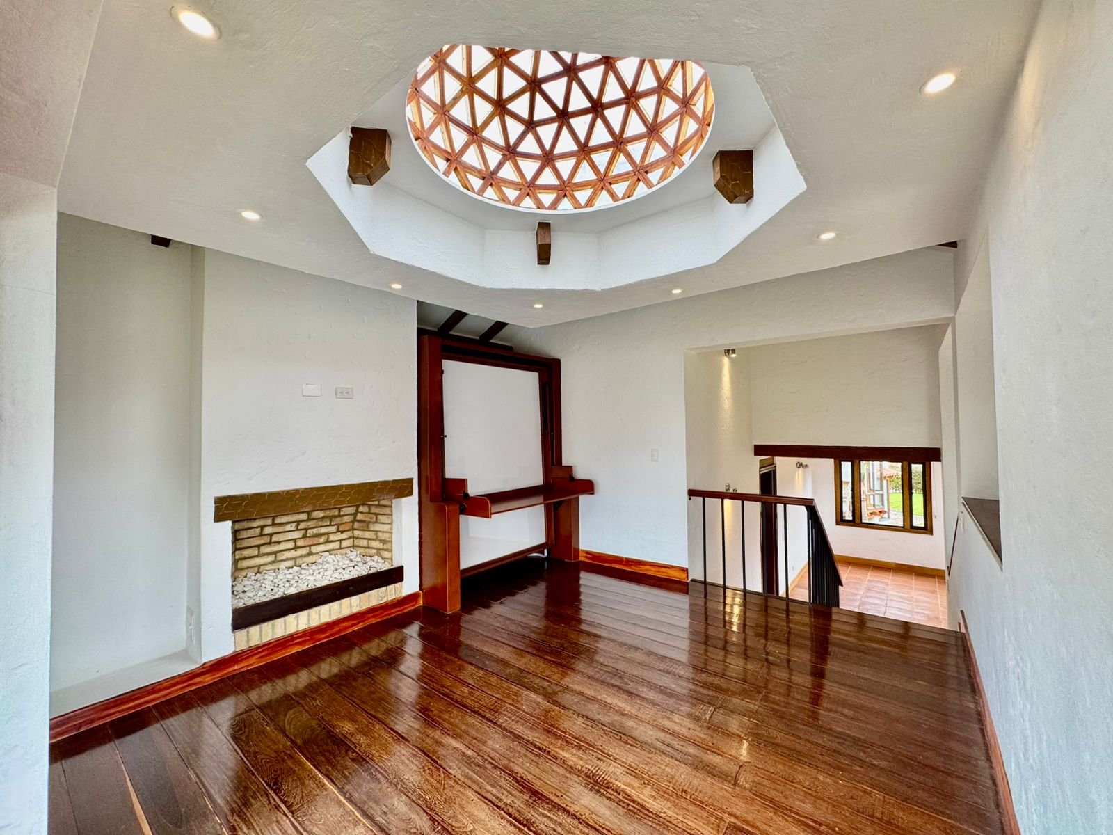 ? Sala de doble altura con chimenea, que aporta amplitud y encanto.